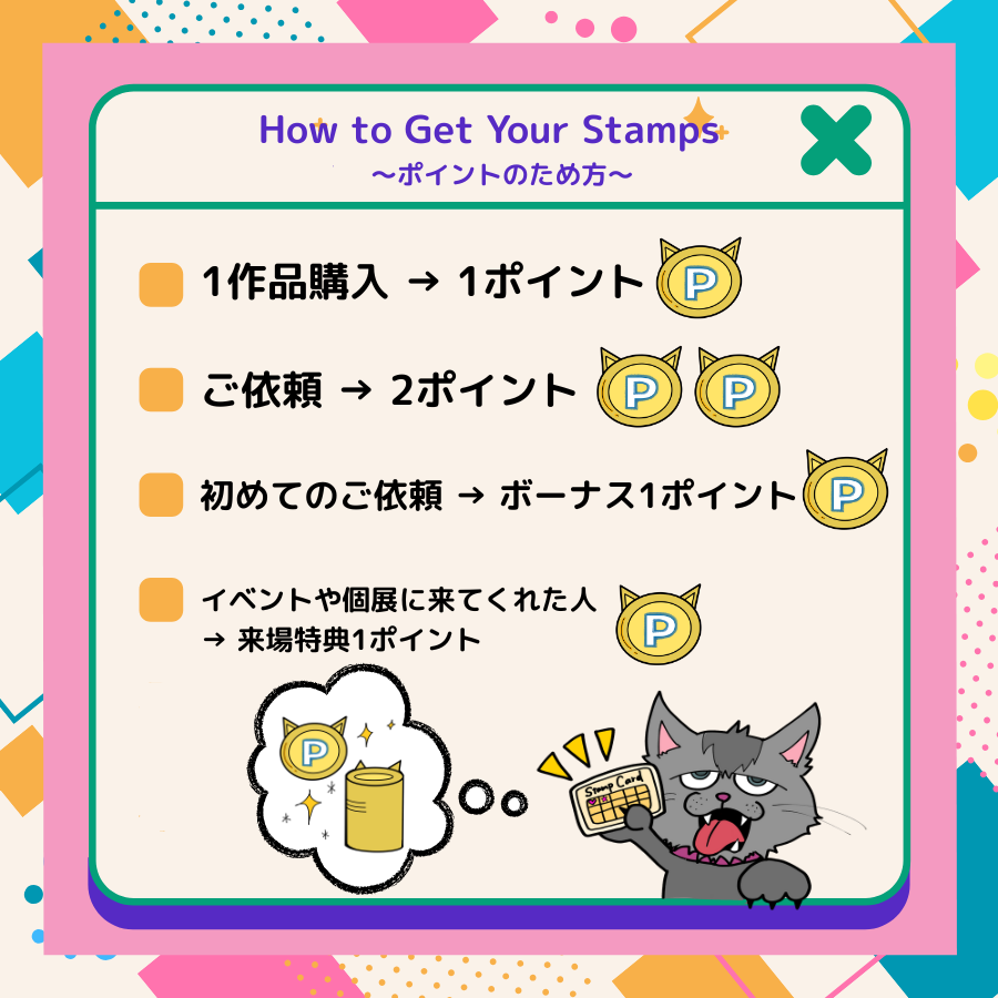 - イベントや個展に来てくれた人 → 来場特典 1ポイント