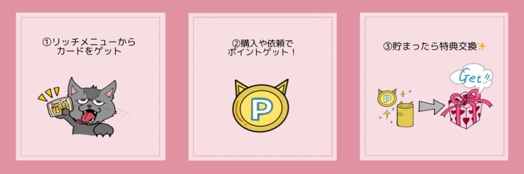 その際は改めてご案内いたしますので、ご安心ください💡) - LINE登録者、及びご自身でメニューからカードをゲットした方のみ限定の仕組みです。