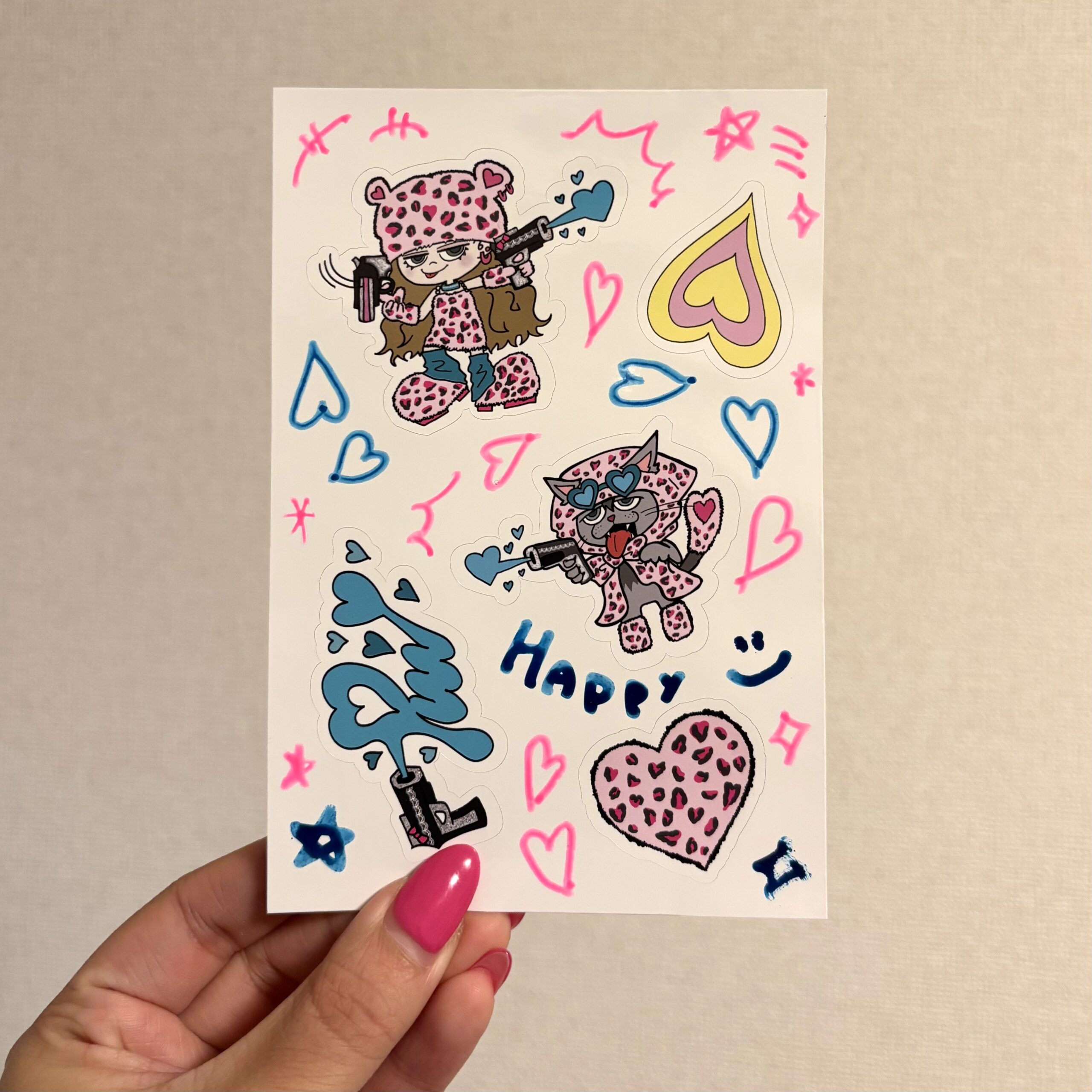 ※ステッカー台紙の余白部分には、1枚ずつ異なる手描きの落書きを添えています。